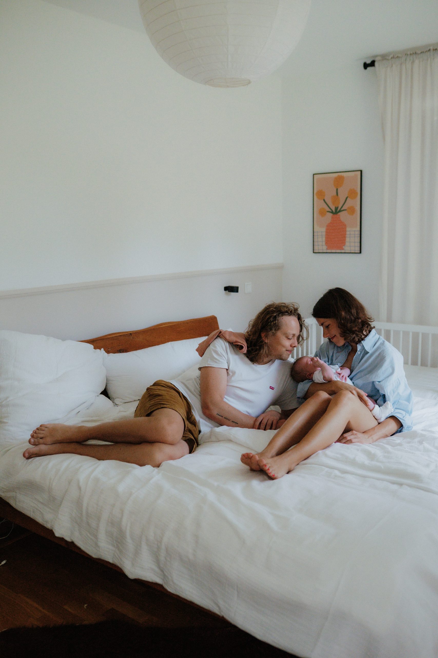 Die Wochenbett-Reportage hingegen dokumentiert euren Alltag und alle kostbaren Momente über mehrere Stunden hinweg. Hier geht es darum, eine vollständige, lebendige Geschichte eurer ersten gemeinsamen Tage zu erzählen – vom Stillen über Kuscheln bis zu den kleinen Ritualen, die euch als Familie ausmachen. Deshalb erhältst du hier alle gelungenen Bilder als Galerie, um den Alltag und die Dynamik eurer Familie in ihrer ganzen Tiefe zu bewahren.